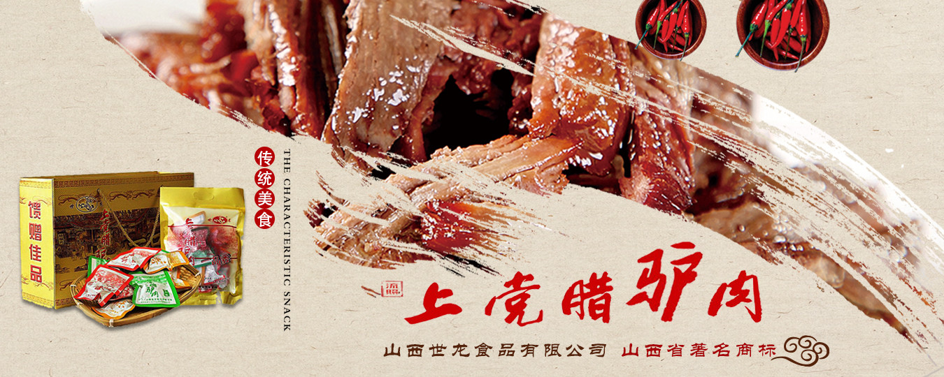 山西世龍食品有限公司是以“世龍”牌上黨臘驢肉系列產品為主導,集科研開發(fā)、良種繁育、基地建設、生產加工、市場營銷于一體的農業(yè)產業(yè)化國家重點龍頭企業(yè)、全國農業(yè)標準化示范區(qū)、全國食品行業(yè)優(yōu)秀龍頭企業(yè)、山西省農業(yè)產業(yè)化重點龍頭企業(yè)、山西省農產品加工“513”工程單位、山西省帶動貧困地區(qū)基地建設重點龍頭企業(yè)、山西省民營畜牧業(yè)示范基地、山西省質量信譽AAA級單位、山西省重合同守信用單位、山西省消費者協(xié)會誠信單位、山西省民營科技企業(yè)。